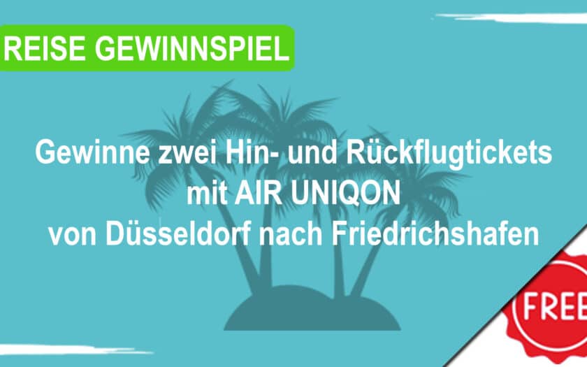 Gemeinsam mit AIR UNIQON verlost der Flughafen Düsseldorf zwei Hin- und Rückflugtickets von Düsseldorf nach Friedrichshafen. Perfekt für einen Kurztrip in die Bodenseeregion mit Natur, Kulinarik und Alpenpanorama. Wie kann ich teilnehmen? Fülle das Anmeldeformular vom Gewinnspielbetreiber aus um an der Verlosung teilzunehmen. Wir drücken die Daumen!